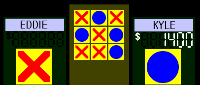 Ryan: Doug, What organ of a buffalo did Plains Indians use to make yellow paint? Doug: Please, Ryan! I haven't had dinner yet! (audience laughs) Anyway, I'll say it's the buffalo's gallblader. Kyle: I disagree. Ryan: It is the gallblader.(time's up sfx) Well, that sound means that time is up Kyle, you won Cy$1,000. We add that to the Cy$400 you won in MG and that gives you a total of Cy$1,400. Thank you for playing.