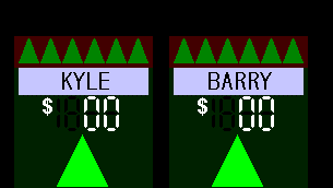 Doug: (pushes button on magic toaster) Kyle since you came closer to the secret number, you'll start us off. I have two questions here. Would you like to play with A or B? Kyle: I'll take B