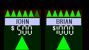 Doug: Well, Brian, just when you thought you'd go down in defeat, you said "da feet" and have a perfect score. Now, it's John's back that's to the wall. He's got to match Matt just to send this game to overtime. See what happens after this. (audience applause; MG-HSH music plays)MG ROUND 3 BEGINS