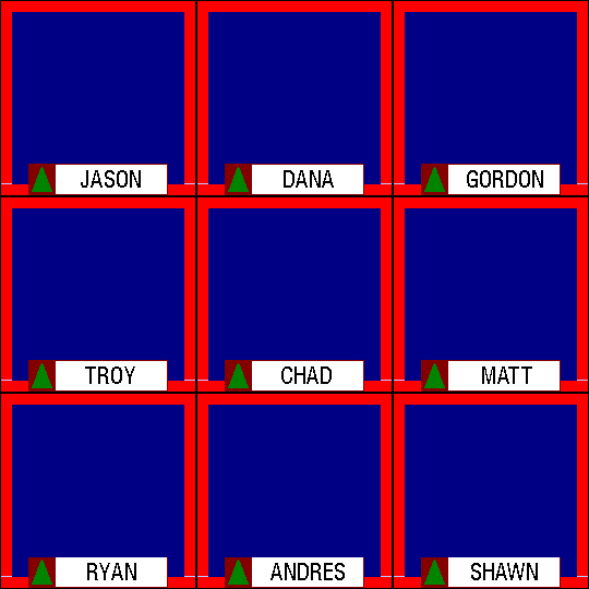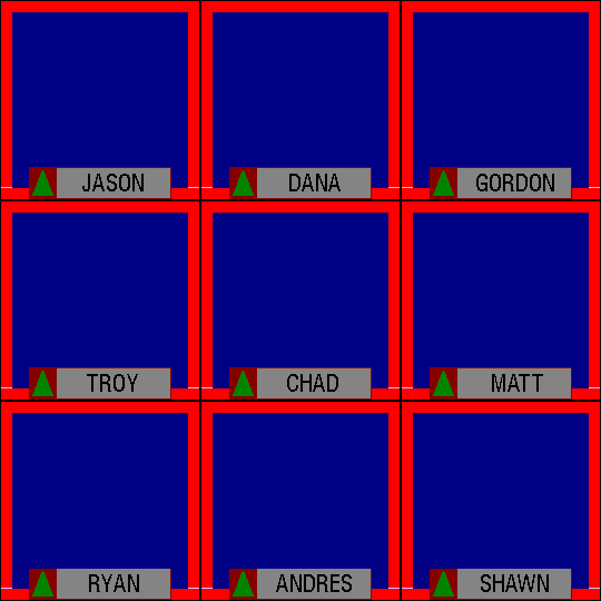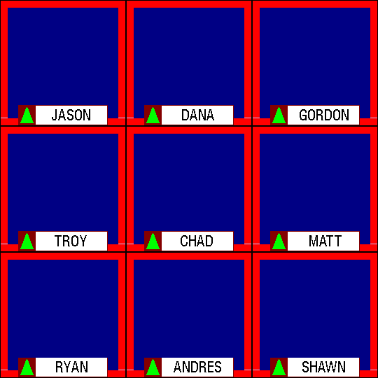 Doug: And we're all set, Dom. Question again. Dumb Dora is so dumb, she thought the GSN show "The Pyramid" taped in << BLANK >>. Dom: Oh gee, could you make this any more easy. EGYPT. (audience cheers) Doug: That's *the* answer -- but ya never know. Someone might come up with a specific answer of, say, Cairo. But let's hope for the best -- starting way up there with Jason. Jason: We all know Studio City is actually in... ------------- | EGYPT | | | ------------- (ding; audience applause) Doug: Of course it is. :) Dom, just like that, CY$600. Dana, what say ye? Dana: ..in Egypt, of course! (ding; audience applause) Doug: That's CY$700. Gordon, can ya make it CY$800? Gordon: Egypt (ding; audience applause) Doug: Dom, you're three for three. Now we start with the middle row and Troy. Question again -- Dumb Dora is so dumb, she thought the GSN show "The Pyramid" taped in << BLANK >>. Troy: I thought of Mike Richards' basement. But I went with -- EGYPT --. (ding; audience applause) Doug: No no no, "The New Remote Control" tapes in his basement. (audience laughs) Chad? Chad: Had to go with... [EGYPT] (ding; audience applause) Doug: Battin' a thousand. Matt? Matt: EGYPT! (ding; audience applause) Doug: Six for six, Dom. That's CY$1100 to the good. Now to the bottom row and Ryan. Dumb Dora is so dumb, she thought the GSN show "The Pyramid" taped in... Ryan: (card) +=======+ | Egypt | +=======+ (ding; audience applause) Doug: That's CY$1200. Andres? Andres: Egypt. (ding; audience applause) Dom: CY$1300. Now to Shawn. If Shawn wrote down "Egypt", we have our first ever perfect score in the extended Cyber- Phone Match. Shawn, what did you write down? Shawn: [EGYPT] (ding) (audience cheers)![]()